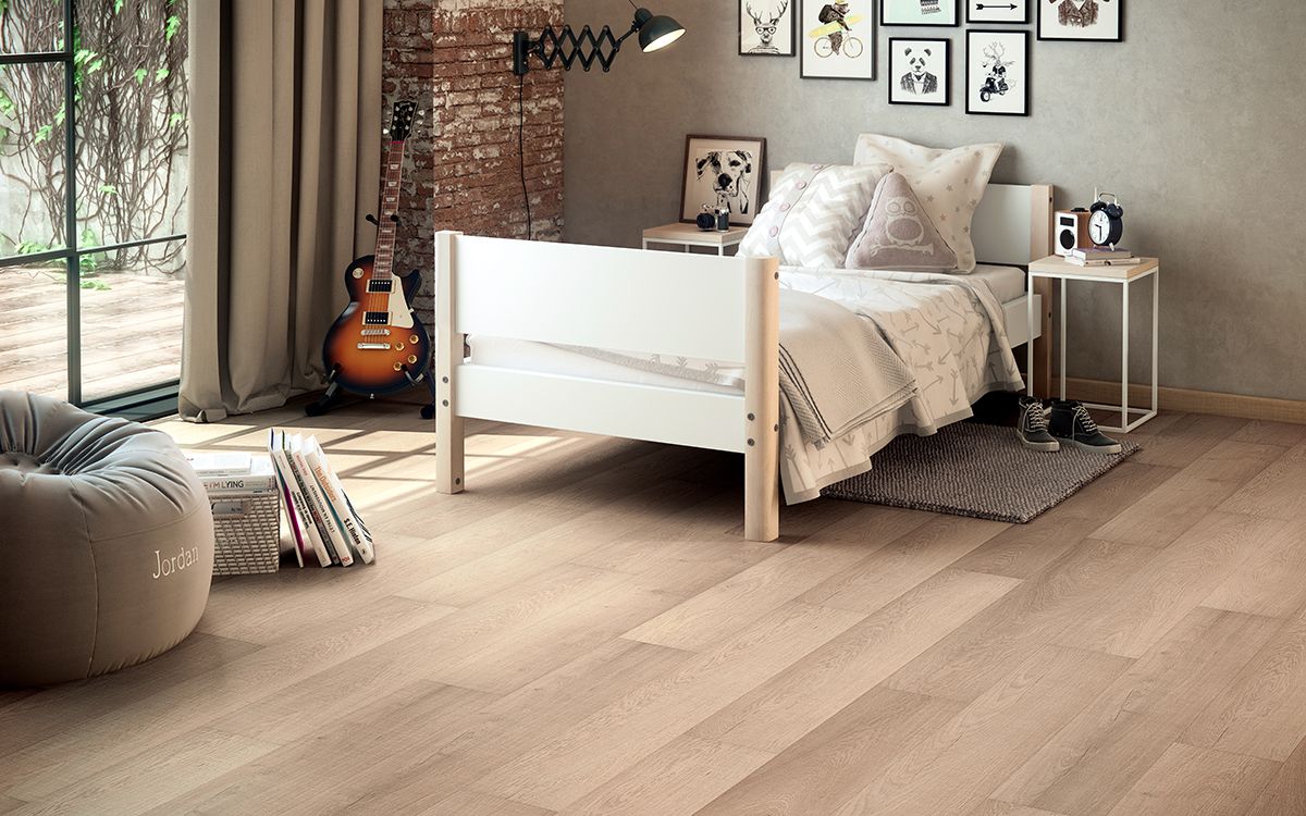 Los suelos laminados que presentan una estructura «sincronizada» con largo 1310 mm y ancho 24 cm. Las lamas presentan un aspecto estilizado y elegante que junto al acabado mate Wood impresión y el bisel longitudinal consiguen la profundidad, el tacto y el aspecto de los tablones de madera natural. Características: Alta resistencia a la humedad, reacción contra el fuego Bfl s1, madera de alta densidad, bajo contenido en formaldehido..